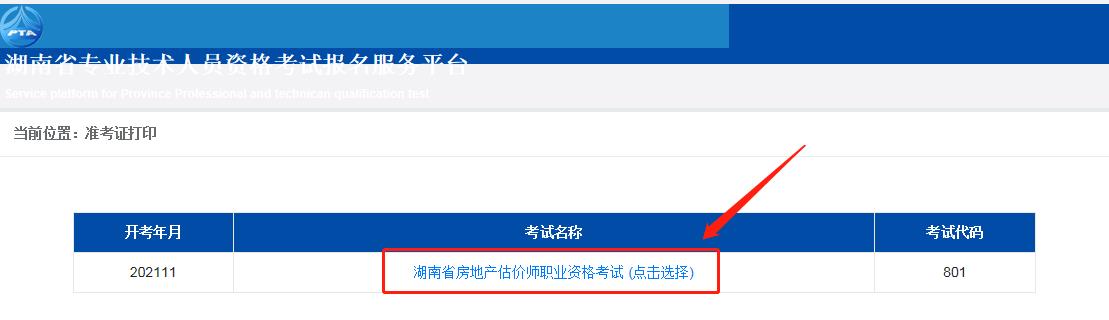 湖南省房地產估價師職業(yè)資格考試 (點擊選擇)”進入提示頁面。
