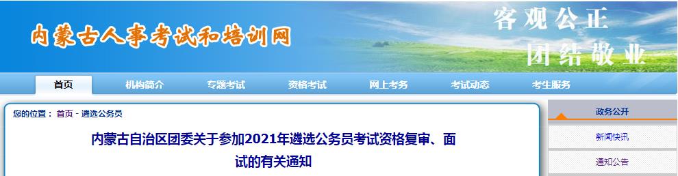 內(nèi)蒙古自治區(qū)團(tuán)委關(guān)于參加2021年遴選公務(wù)員考試資格復(fù)審、面試的有關(guān)通知