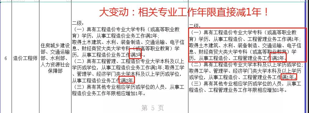12月6日人社部發(fā)布二級造價工程師報考條件調(diào)整如下: