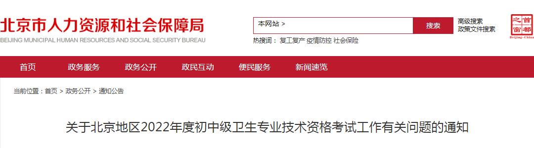 關(guān)于北京地區(qū)2022年度初中級(jí)衛(wèi)生專(zhuān)業(yè)技術(shù)資格考試工作有關(guān)問(wèn)題的通知
