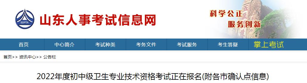 具體考試時間、專業(yè)和科目設(shè)置、報考政策、收費標準、考試成績管理等內(nèi)容請登錄山東人事考試信息網(wǎng)查看《關(guān)于2022年度初中級衛(wèi)生專業(yè)技術(shù)資格考試考務(wù)工作有關(guān)問題的通知》,各市報名確認及資格審查安排事宜請登錄報名市人事考試機構(gòu)官方網(wǎng)站查詢考試相關(guān)通知。