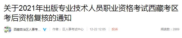 關(guān)于2021年出版專業(yè)技術(shù)人員職業(yè)資格考試西藏考區(qū)考后資格復(fù)核的通知