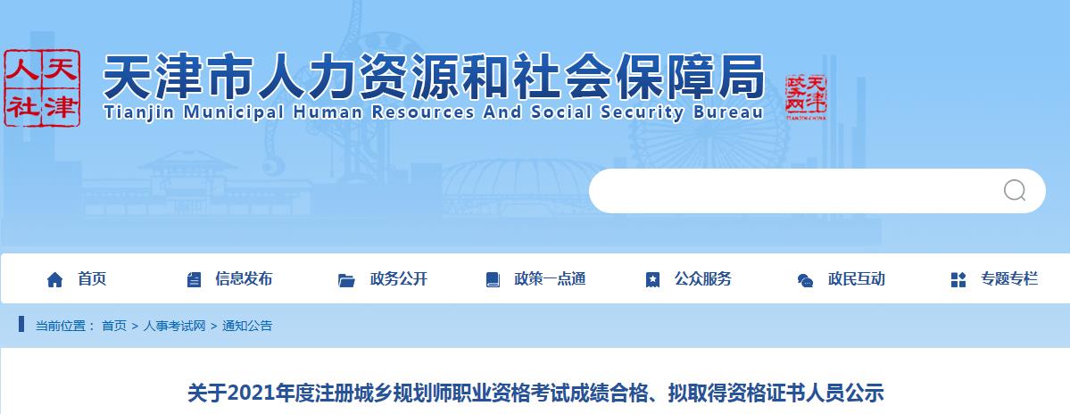 關(guān)于2021年度注冊城鄉(xiāng)規(guī)劃師職業(yè)資格考試成績合格、擬取得資格證書人員公示