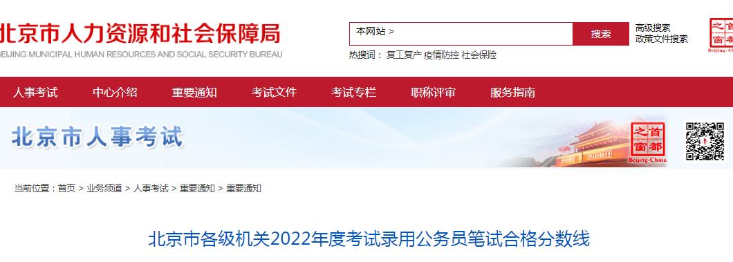 北京市各級機(jī)關(guān)2022年度考試錄用公務(wù)員筆試合格分?jǐn)?shù)線