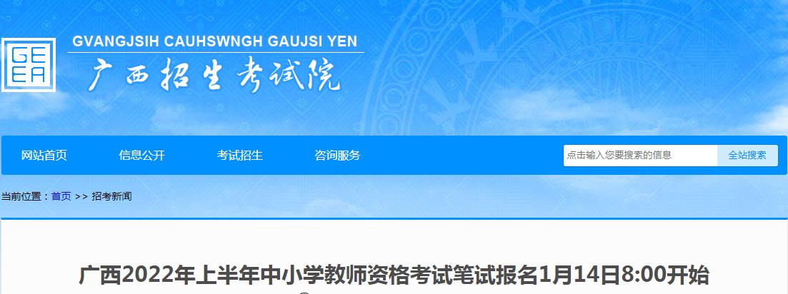 廣西2022年上半年中小學教師資格考試筆試報名1月14日8:00開始