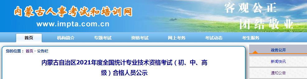 內(nèi)蒙古自治區(qū)2021年度全國統(tǒng)計(jì)專業(yè)技術(shù)資格考試(初、中、高級(jí))合格人員公示