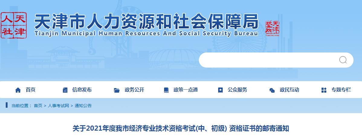 關(guān)于2021年度我市經(jīng)濟(jì)專業(yè)技術(shù)資格考試(中、初級(jí)) 資格證書的郵寄通知