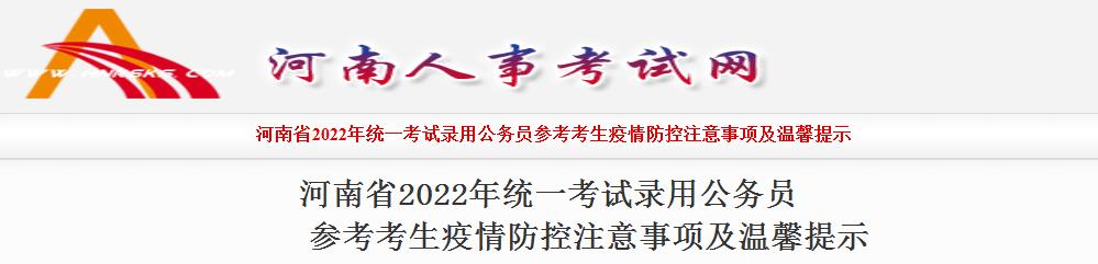 河南省2022年統(tǒng)一考試錄用公務員參考考生疫情防控注意事項及溫馨提示