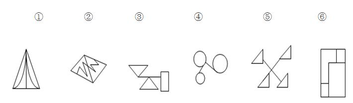 例題:把下面的六個(gè)圖形分為兩類,使每一類圖形都有各自的共同特征或規(guī)律,分類正確的一項(xiàng)是: