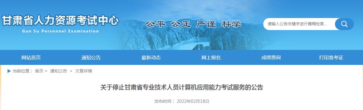 關(guān)于停止甘肅省專業(yè)技術(shù)人員計(jì)算機(jī)應(yīng)用能力考試服務(wù)的公告
