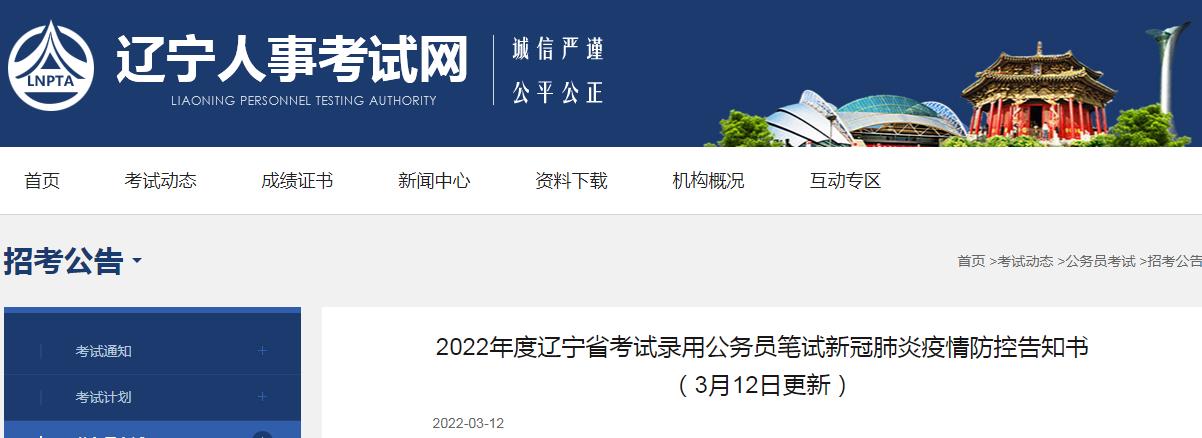 2022年度遼寧省考試錄用公務(wù)員筆試新冠肺炎疫情防控告知書 (3月12日更新)