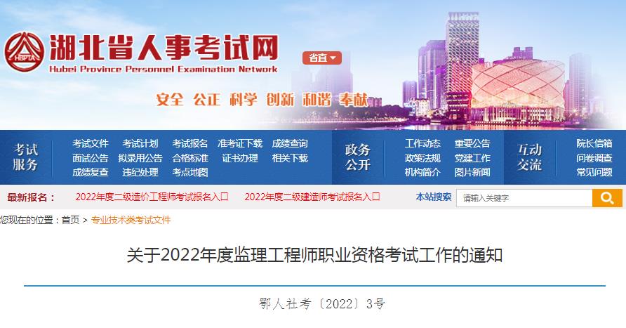 小貼士:湖北省2022年度監(jiān)理工程師職業(yè)資格考試相關(guān)通知完整內(nèi)容及附件請(qǐng)復(fù)制通知地址查看!