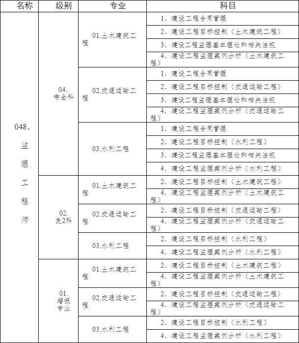 2.監(jiān)理工程師職業(yè)資格考試各科目設(shè)置
