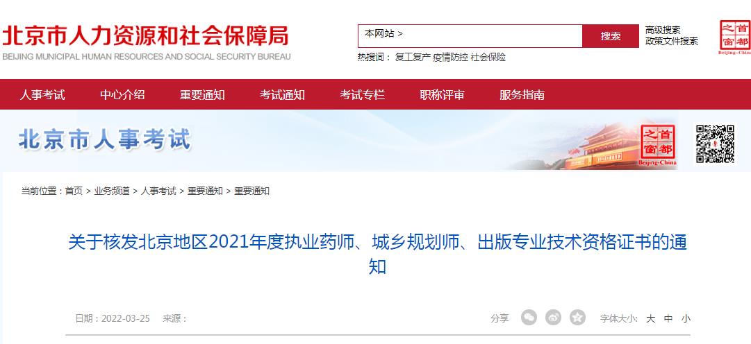 通知地址:http://rsj.beijing.gov.cn/ywsite/bjpta/xwzx/zytz/202203/t20220325_2639333.html