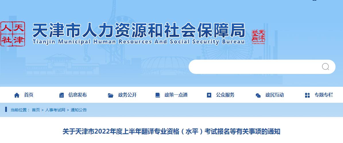 關于天津市2022年度上半年翻譯專業(yè)資格(水平)考試報名等有關事項的通知