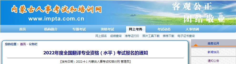 2022年度全國翻譯專業(yè)資格(水平)考試報名的通知