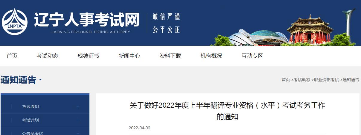 小貼士:遼寧省2022年度上半年翻譯專(zhuān)業(yè)資格(水平)資格考試相關(guān)通知完整內(nèi)容及附件請(qǐng)復(fù)制通知地址查看!