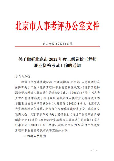 關于做好北京市2022年度二級造價工程師職業(yè)資格考試工作的通知