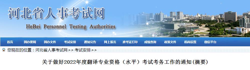 根據(jù)人力資源和社會保障部人事考試中心《關(guān)于做好2022年度翻譯專業(yè)資格(水平)考試考務(wù)工作的通知》(人考中心函[2022]10號)精神,2022年度上、下半年翻譯專業(yè)資格(水平)考試(以下簡稱“翻譯考試”)分別6月18日、19日和11月5日、6日舉行,考試形式為電子化考試(即機考)。按照疫情防控工作有關(guān)要求,為減少報考人員跨地區(qū)流動參加考試造成疫情防控壓力,今年筆譯考試地點設(shè)在各市??谧g考試地點設(shè)在石家莊市和唐山市??谧g考試報考人員在網(wǎng)上填報信息時按照屬地原則選擇“考區(qū)”,其中選擇“考區(qū)”為唐山、秦皇島、滄州、廊坊、承德的報考人員,考試地點統(tǒng)一設(shè)在唐山市;選擇 “考區(qū)”為石家莊、邢臺、邯鄲、保定、張家口、衡水,考試地點統(tǒng)一設(shè)在石家莊市。辛集市、定州市和雄安新區(qū)不設(shè)報名點,報名及其他考務(wù)管理工作分別由石家莊、保定市考試管理機構(gòu)負責。為進一步做好我省2022年翻譯專業(yè)資格(水平)考試的考務(wù)工作,現(xiàn)將有關(guān)事項通知如下: