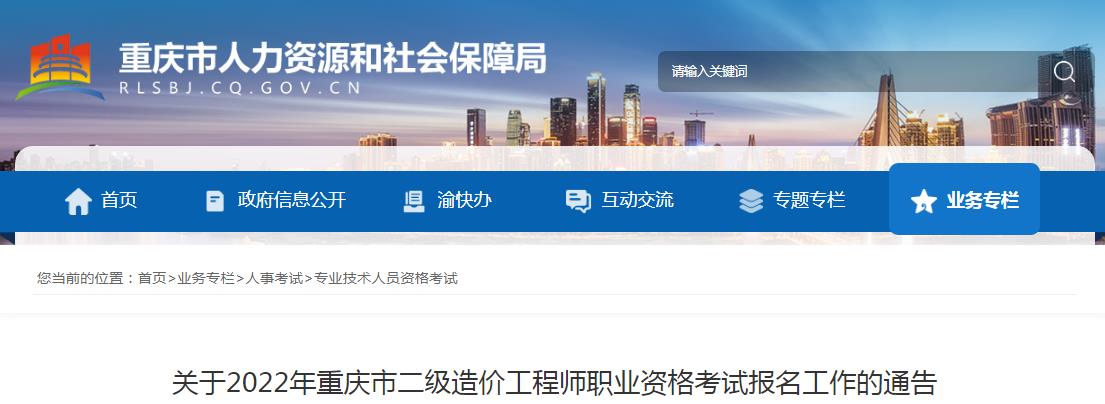 關于2022年重慶市二級造價工程師職業(yè)資格考試報名工作的通告