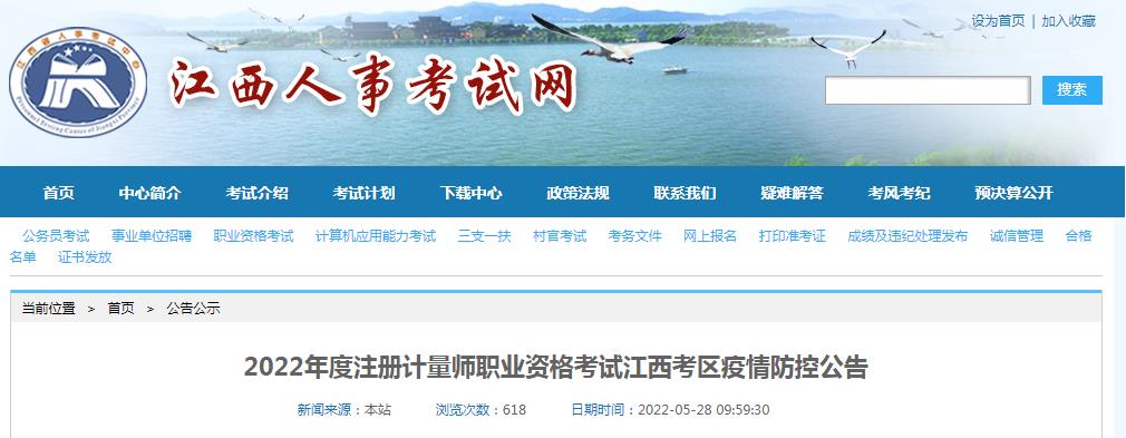 2022年度注冊(cè)計(jì)量師職業(yè)資格考試江西考區(qū)疫情防控公告