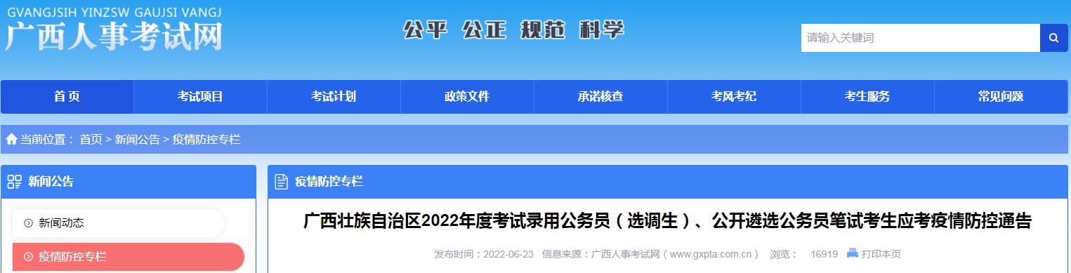 廣西壯族自治區(qū)2022年度考試錄用公務(wù)員(選調(diào)生)、公開遴選公務(wù)員筆試考生應(yīng)考疫情防控通告