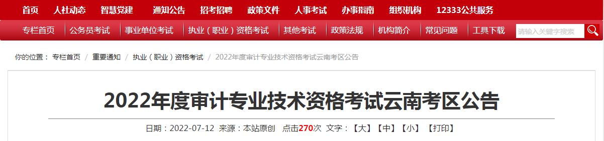 2022年度審計(jì)專業(yè)技術(shù)資格考試云南考區(qū)公告