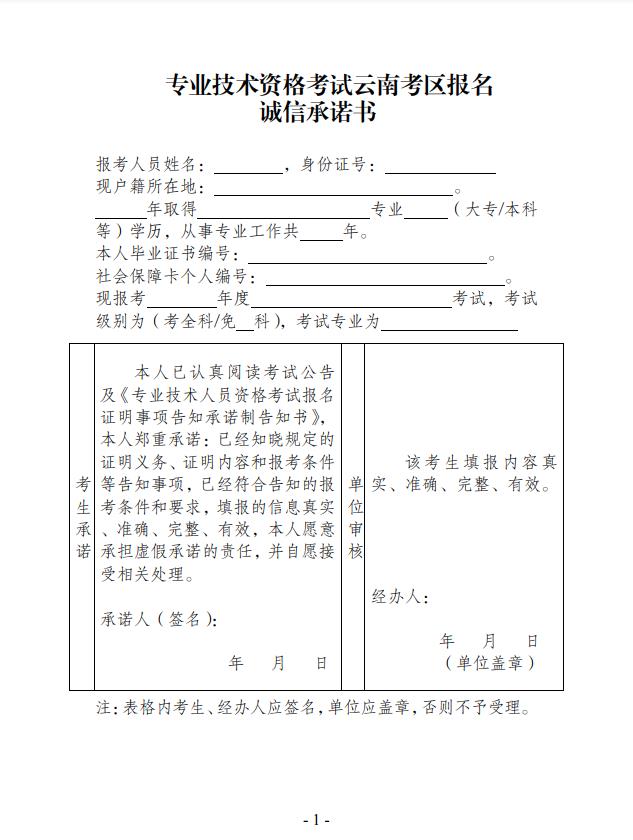 附件:1.專業(yè)技術(shù)資格考試云南考區(qū)報(bào)名誠信承諾書