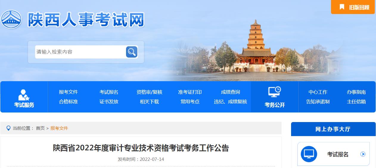 陜西省2022年度審計專業(yè)技術資格考試考務工作公告