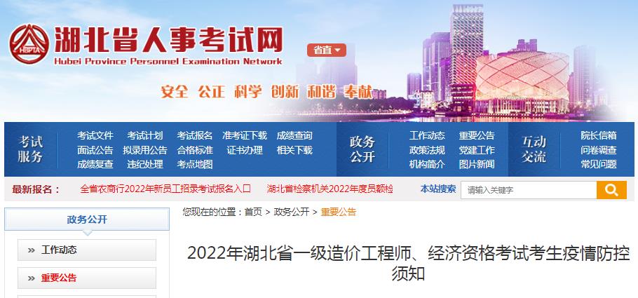 小貼士:關(guān)于湖北省2022年度一級(jí)造價(jià)工程師、經(jīng)濟(jì)資格考試考生疫情防控相關(guān)內(nèi)容,完整內(nèi)容及附件請(qǐng)復(fù)制原文地址查看!