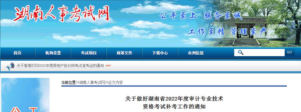 關于做好湖南省2022年度審計專業(yè)技術資格考試補考工作的通知