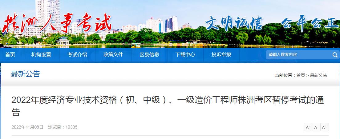 2022年度經(jīng)濟(jì)專業(yè)技術(shù)資格(初、中級)、一級造價工程師株洲考區(qū)暫??荚嚨耐ǜ?/strong>