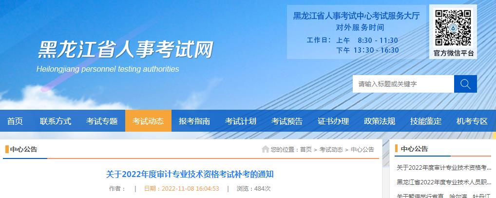 關(guān)于2022年度審計專業(yè)技術(shù)資格考試補(bǔ)考的通知