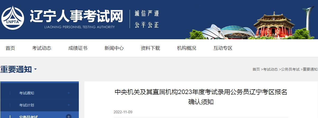 中央機關(guān)及其直屬機構(gòu)2023年度考試錄用公務(wù)員遼寧考區(qū)報名確認須知