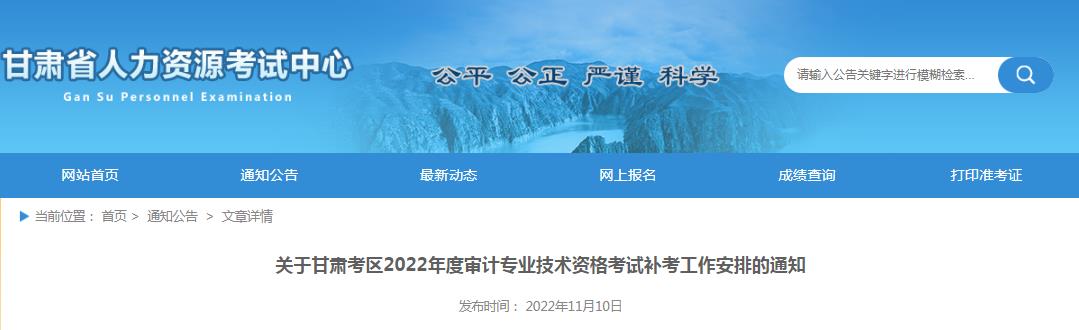 關于甘肅考區(qū)2022年度審計專業(yè)技術資格考試補考工作安排的通知