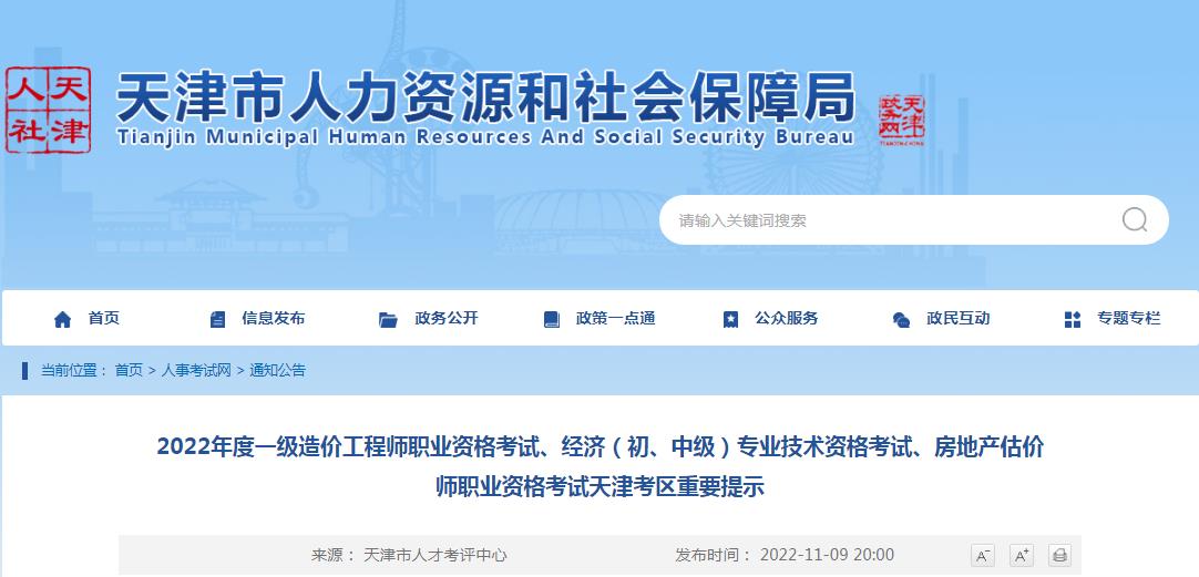 2022年度一級(jí)造價(jià)工程師職業(yè)資格考試、經(jīng)濟(jì)(初、中級(jí))專業(yè)技術(shù)資格考試、房地產(chǎn)估價(jià)師職業(yè)資格考試天津考區(qū)重要提示