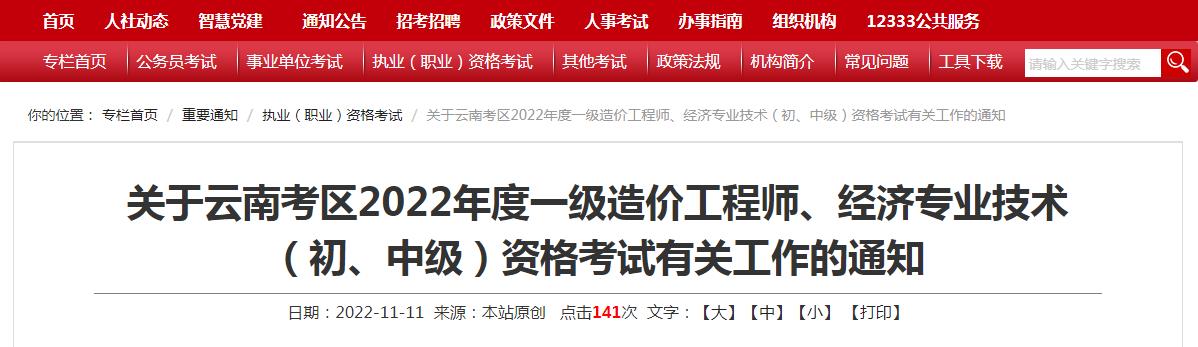 關(guān)于云南考區(qū)2022年度一級(jí)造價(jià)工程師、經(jīng)濟(jì)專(zhuān)業(yè)技術(shù)(初、中級(jí))資格考試有關(guān)工作的通知