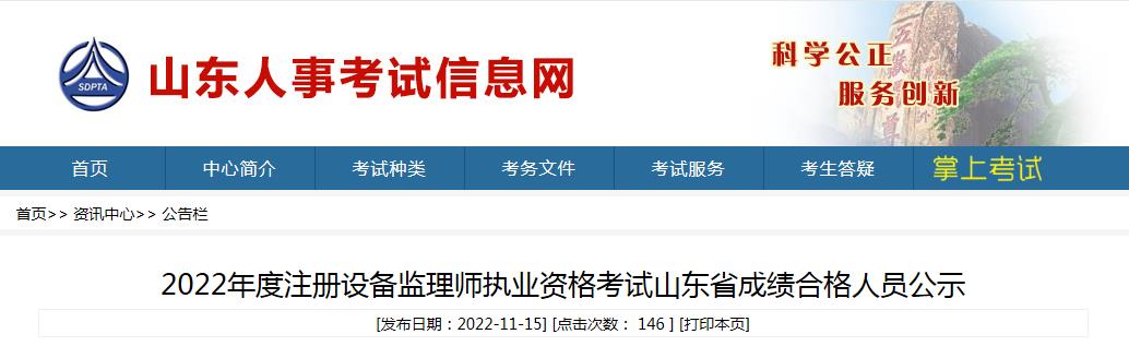 2022年度注冊設(shè)備監(jiān)理師執(zhí)業(yè)資格考試山東省成績合格人員公示
