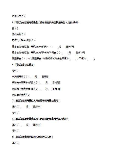 11. 是否為離開高風險區(qū)域、重點疫情地區(qū)未滿10日的人員: