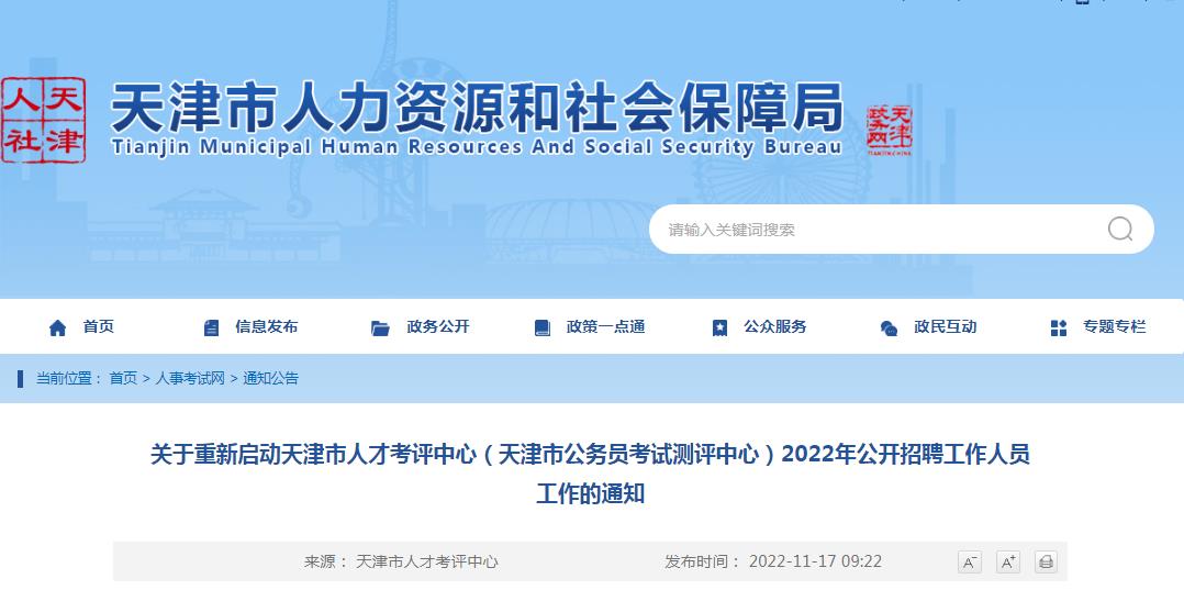 關(guān)于重新啟動天津市人才考評中心(天津市公務(wù)員考試測評中心)2022年公開招聘工作人員工作的通知