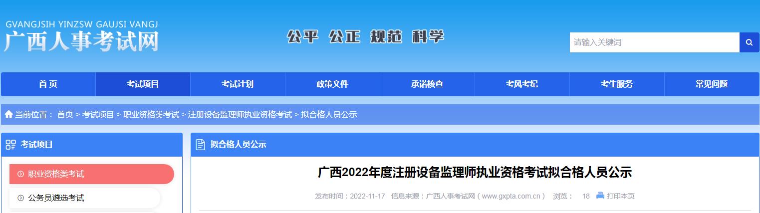 廣西2022年度注冊設(shè)備監(jiān)理師執(zhí)業(yè)資格考試擬合格人員公示