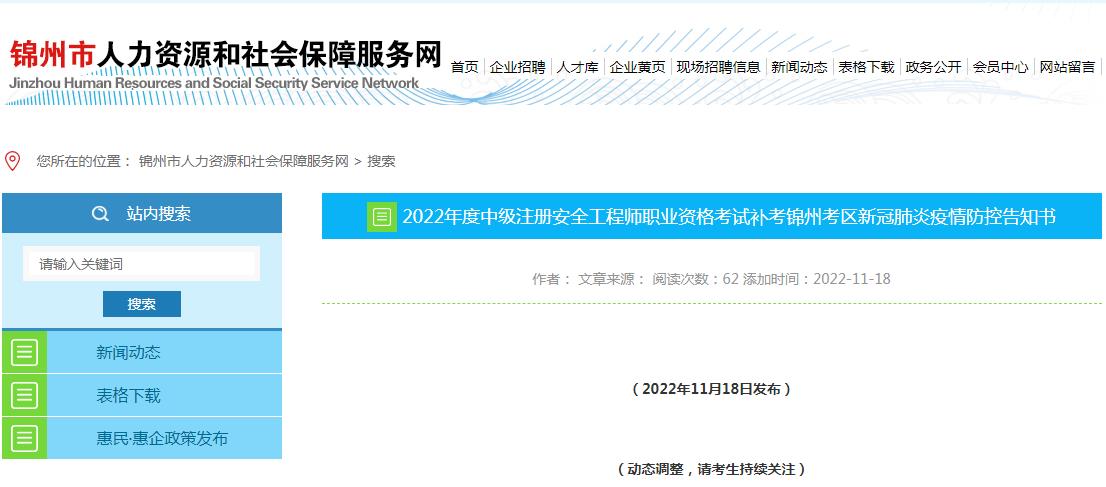 2022年度中級注冊安全工程師職業(yè)資格考試補考錦州考區(qū)新冠肺炎疫情防控告知書