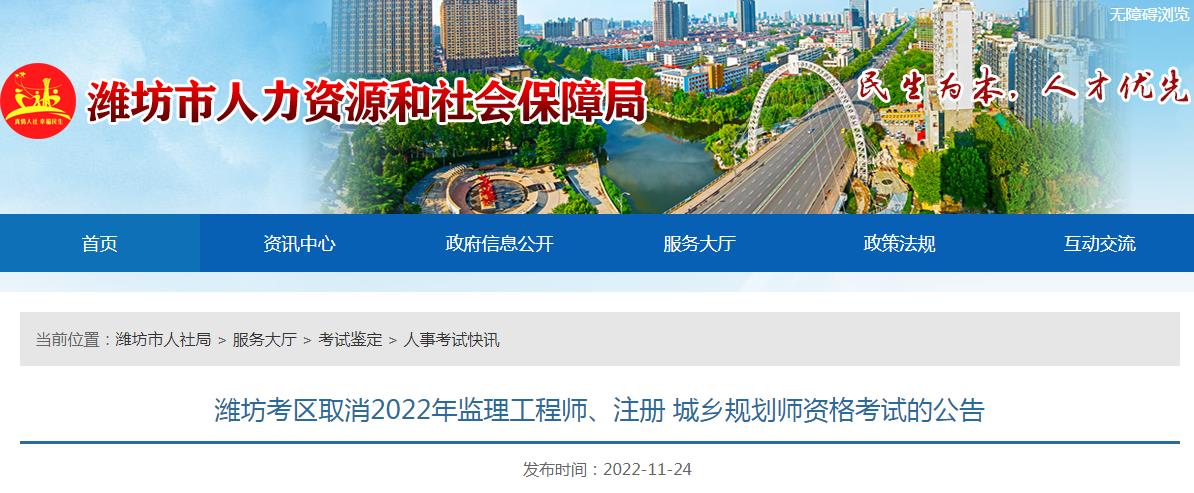 濰坊考區(qū)取消2022年監(jiān)理工程師、注冊 城鄉(xiāng)規(guī)劃師資格考試的公告