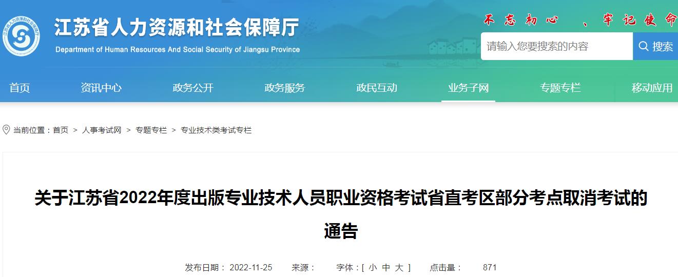 關(guān)于江蘇省2022年度出版專業(yè)技術(shù)人員職業(yè)資格考試省直考區(qū)部分考點取消考試的通告