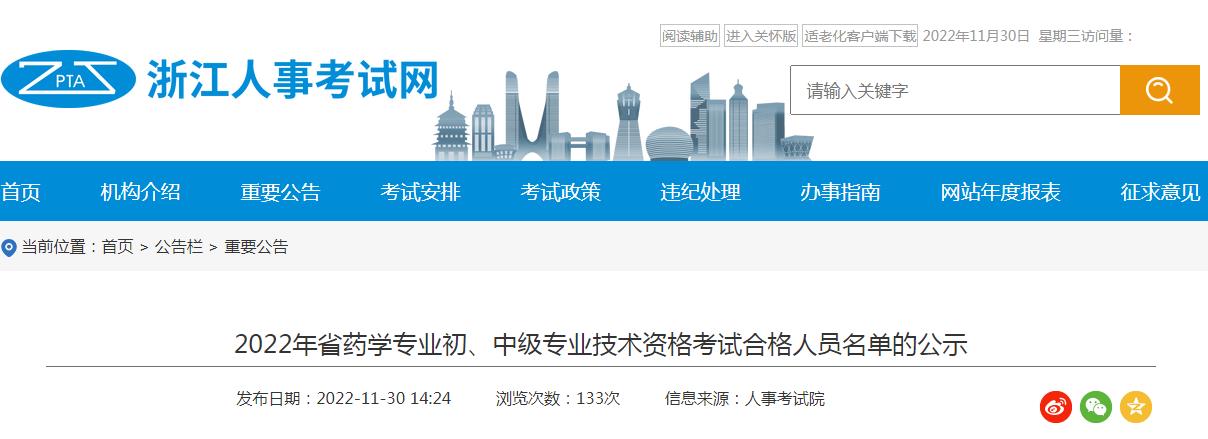 根據(jù)《關(guān)于做好2022年度省藥學專業(yè)初、中級專業(yè)技術(shù)資格考試考務(wù)工作的通知》(浙考發(fā)〔2022〕10號)文件規(guī)定,現(xiàn)將2022年度合格人員名單予以公示,公示時間10個工作日(2022年11月30日至12月13日止)。
