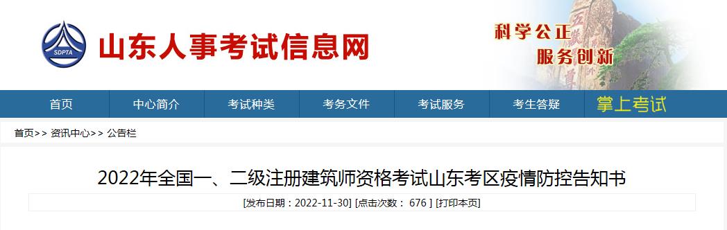 2022年全國一、二級(jí)注冊建筑師資格考試山東考區(qū)疫情防控告知書