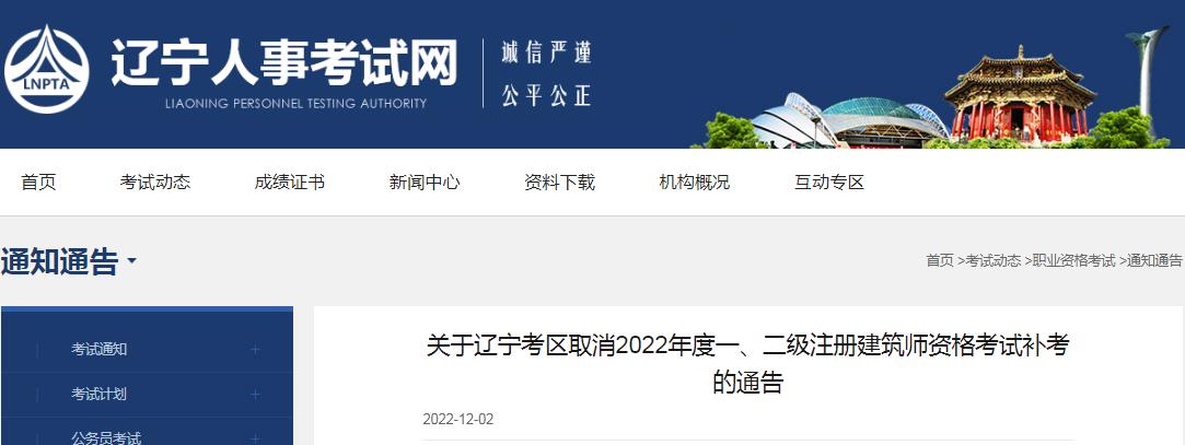 關(guān)于遼寧考區(qū)取消2022年度一、二級注冊建筑師資格考試補考的通告