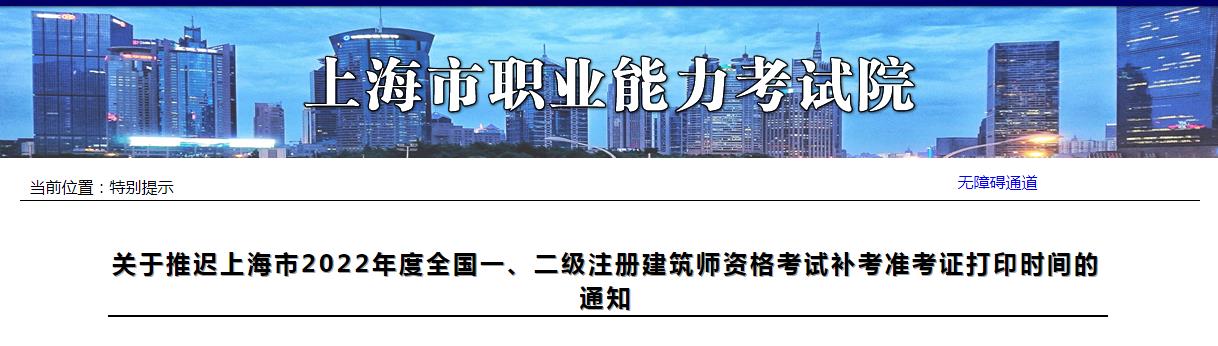 關(guān)于推遲上海市2022年度全國一、二級注冊建筑師資格考試補考準(zhǔn)考證打印時間的通知