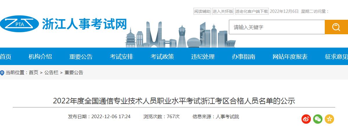 根據(jù)《關(guān)于做好 2022 年度通信專業(yè)技術(shù)人員初、中級(jí) 職業(yè)水平考試考務(wù)工作的通知》(浙考發(fā)〔2022〕26號(hào))文件規(guī)定,現(xiàn)將2022年度合格人員名單予以公示,公示時(shí)間10個(gè)工作日(2022年12月6日至2022年12月19日止)。