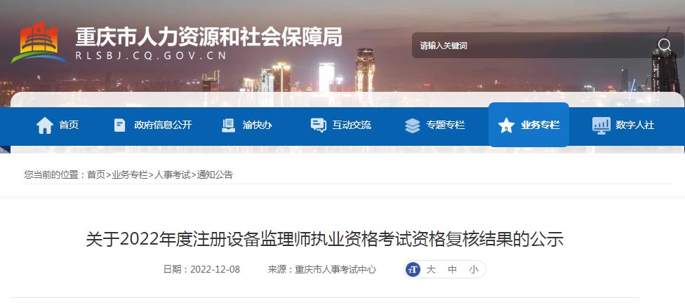 關(guān)于2022年度注冊設(shè)備監(jiān)理師執(zhí)業(yè)資格考試資格復(fù)核結(jié)果的公示
